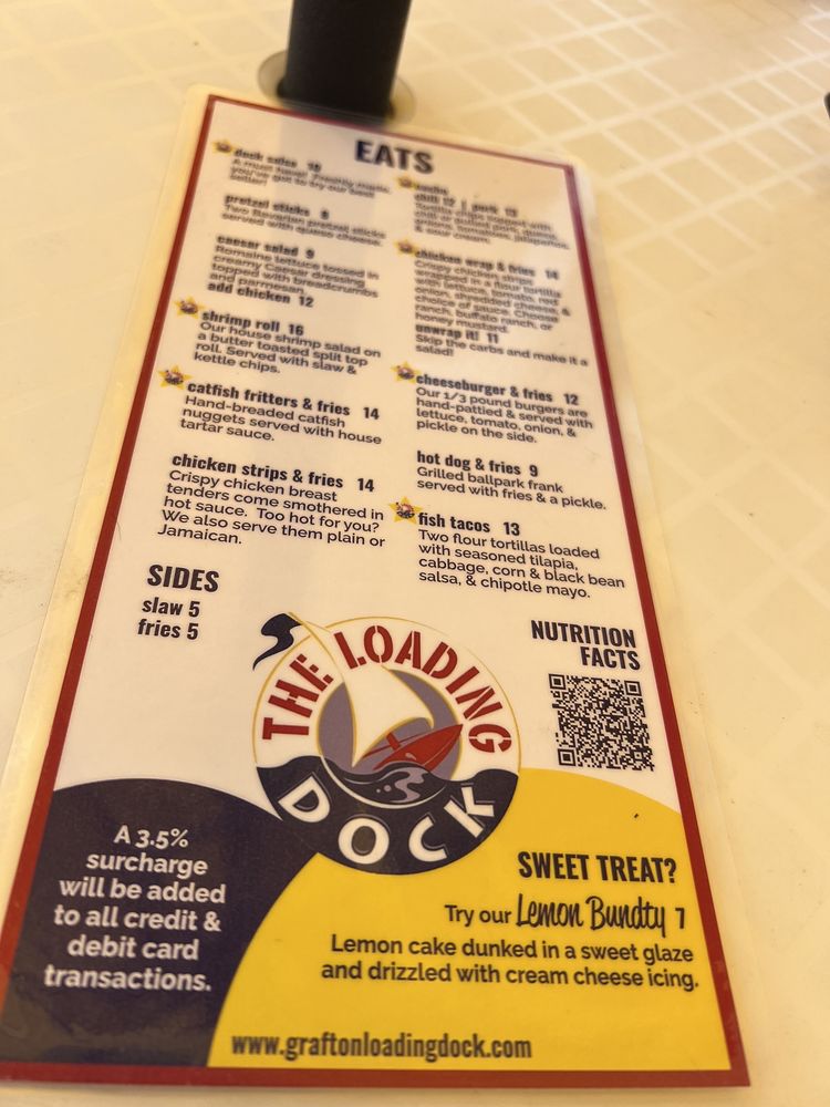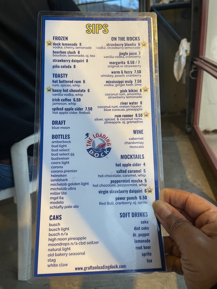 Introducing The Loading Dock Bar & Grill, a popular American bar located at 401 E Front St in Grafton, IL. This women-owned and veteran-owned establishment offers a wide range of amenities, including takeout, reservations, delivery, and options for pescatarian and vegetarian diners. With wheelchair accessibility, parking options, and even cryptocurrency payment accepted, The Loading Dock Bar & Grill caters to a diverse audience. The vibrant atmosphere includes live music on weekends, happy hour specials, and outdoor seating with heating and coverage. Guests can enjoy a full bar, smoking area, TV, and even bring their dogs. The menu features a variety of dishes perfect for lunch or dinner, making it a great choice for groups and families. With fantastic service and a unique setting along the river, The Loading Dock Bar & Grill is a must-visit destination in Grafton.